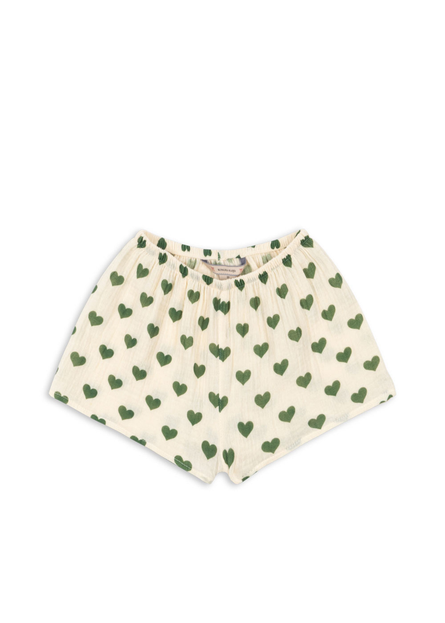 Minkšti šortai iš lengvo ir kvėpuojančio muslino. Laisvo kirpimo, su lanksčia tampria juosmens juosta. Pagaminti iš 100 % ekologiškos medvilnės.