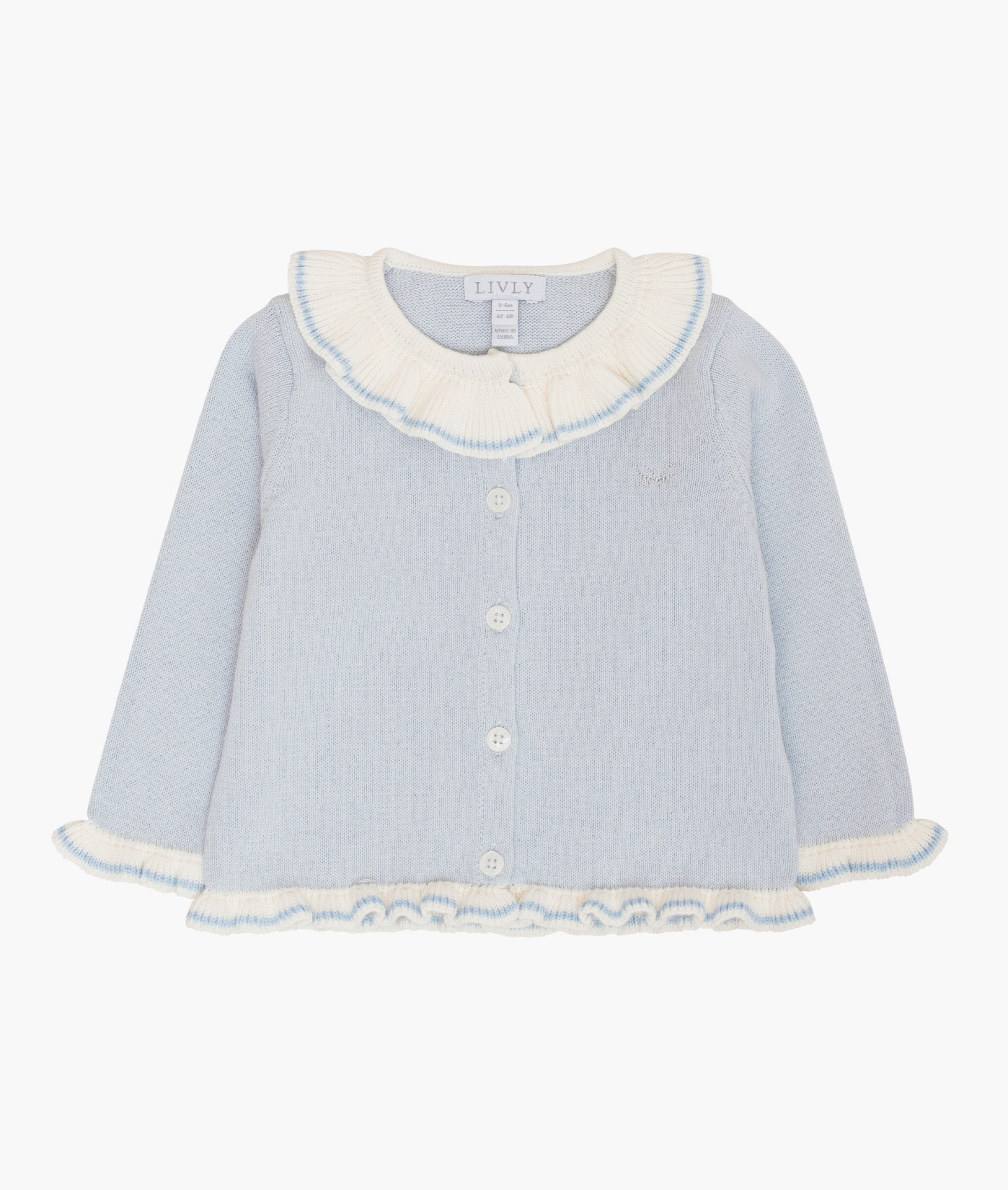 Praskaidrinkite savo mažylio garderobą su mūsų „Judit“ kardiganu, pasižyminčiu gražiai detalizuota apykakle ir žavinga raukiniais apačioje. Pagamintas iš 100 % minkštos medvilnės, jis yra jaukus ir dailiai priglunda. Minkšti rankogaliai suteikia elegancijos, todėl šis kardiganas yra puikus drabužis bet kokiai progai.
