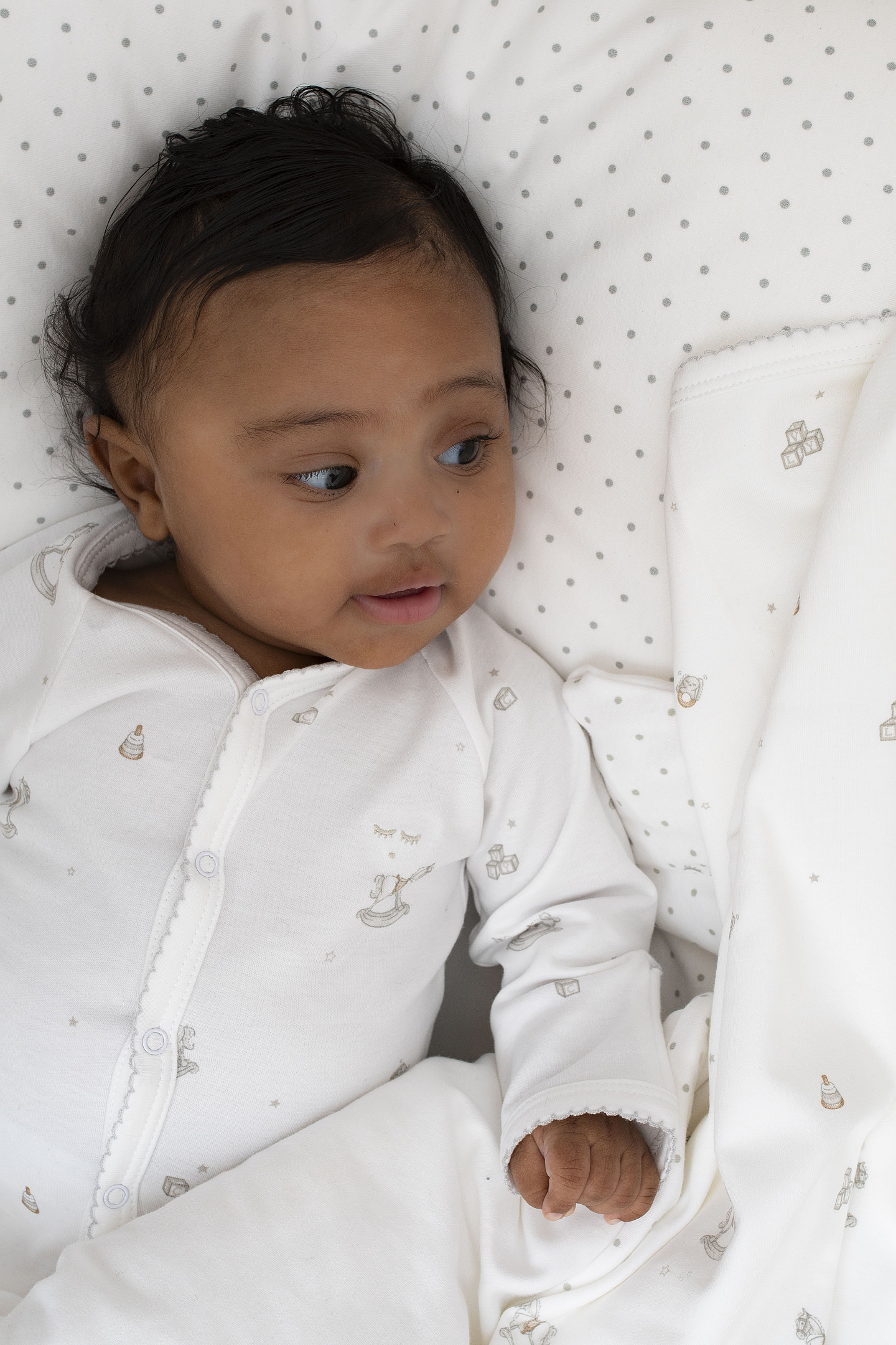 Pima medvilnė yra minkštas ir patvarus natūralus pluoštas, kuris rankomis atrenkamas, kad būtų pagaminti geriausios kokybės kūdikių rūbeliai. Tikroji audinio spalva gali skirtis priklausomai nuo sezono. Nuo geriausių audinių iki dėmesio detalėms – mes esame pasiryžę tiekti minkščiausius ir patvariausius kūdikių rūbelius, kuriuos branginsite amžinai.