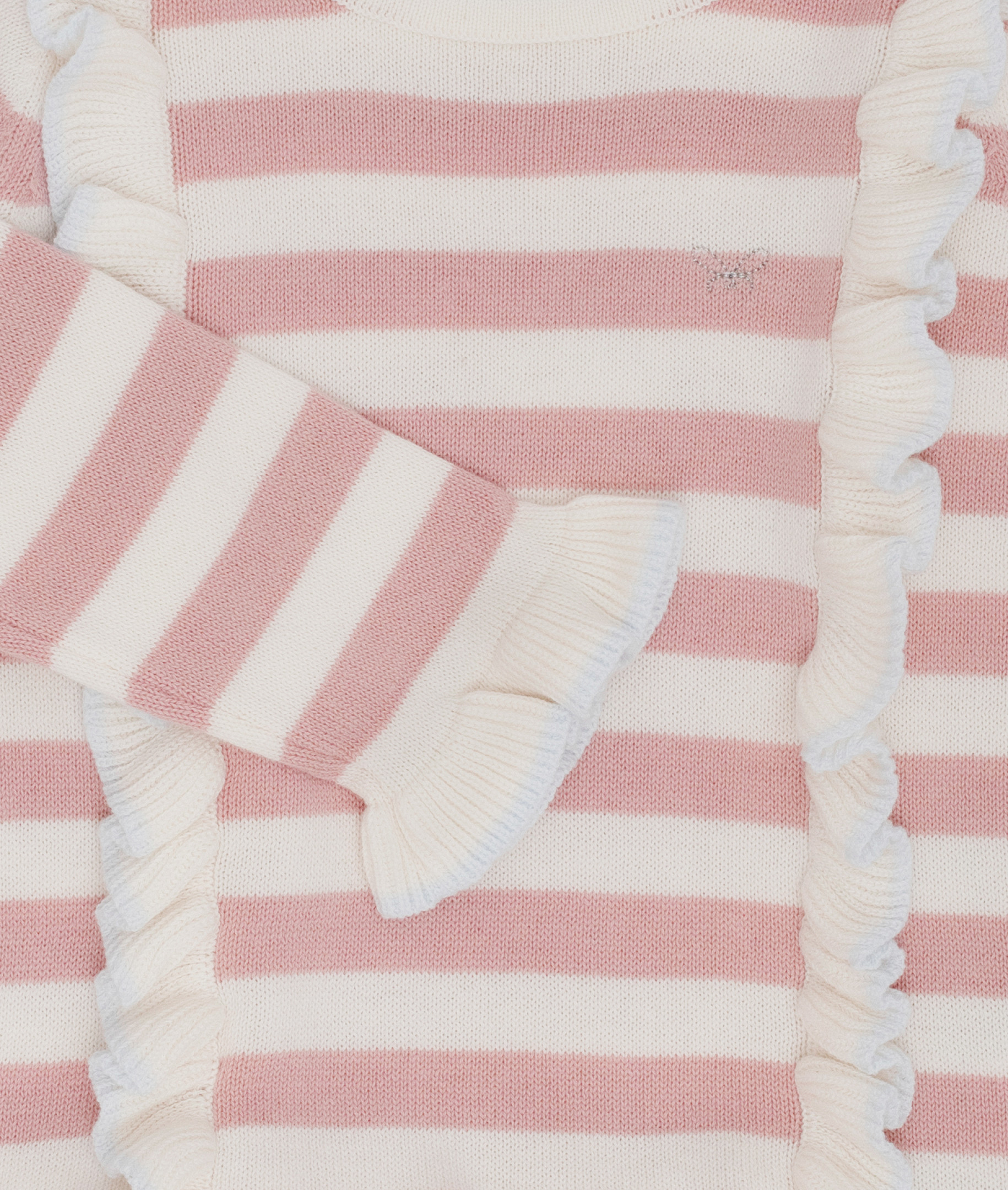 Šis megztinis – tobulas komforto ir žavesio derinys! Minkštos, jaukios medvilnės ir elegantiškos O formos iškirptės dėka jis skirtas dėvėti visą dieną. Subtilūs raukiniai ant pečių, rankogalių ir megztuko apačios suteikia žaismingumo, mergaitiškumo. Tinka pasipuošti tiek ypatingai dienai, tiek jaukiam Pasivaikščiojimui vėsią dieną lauke.