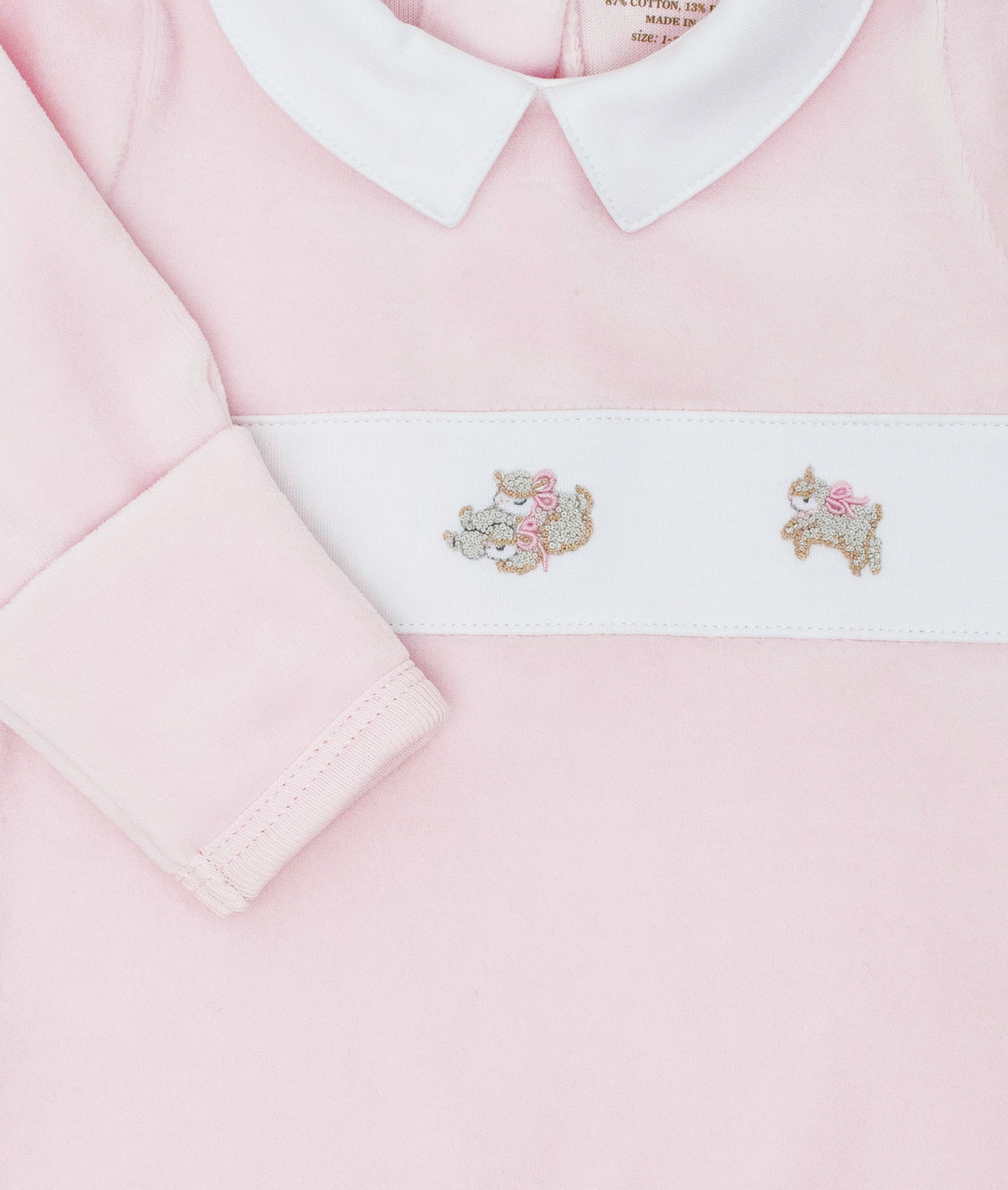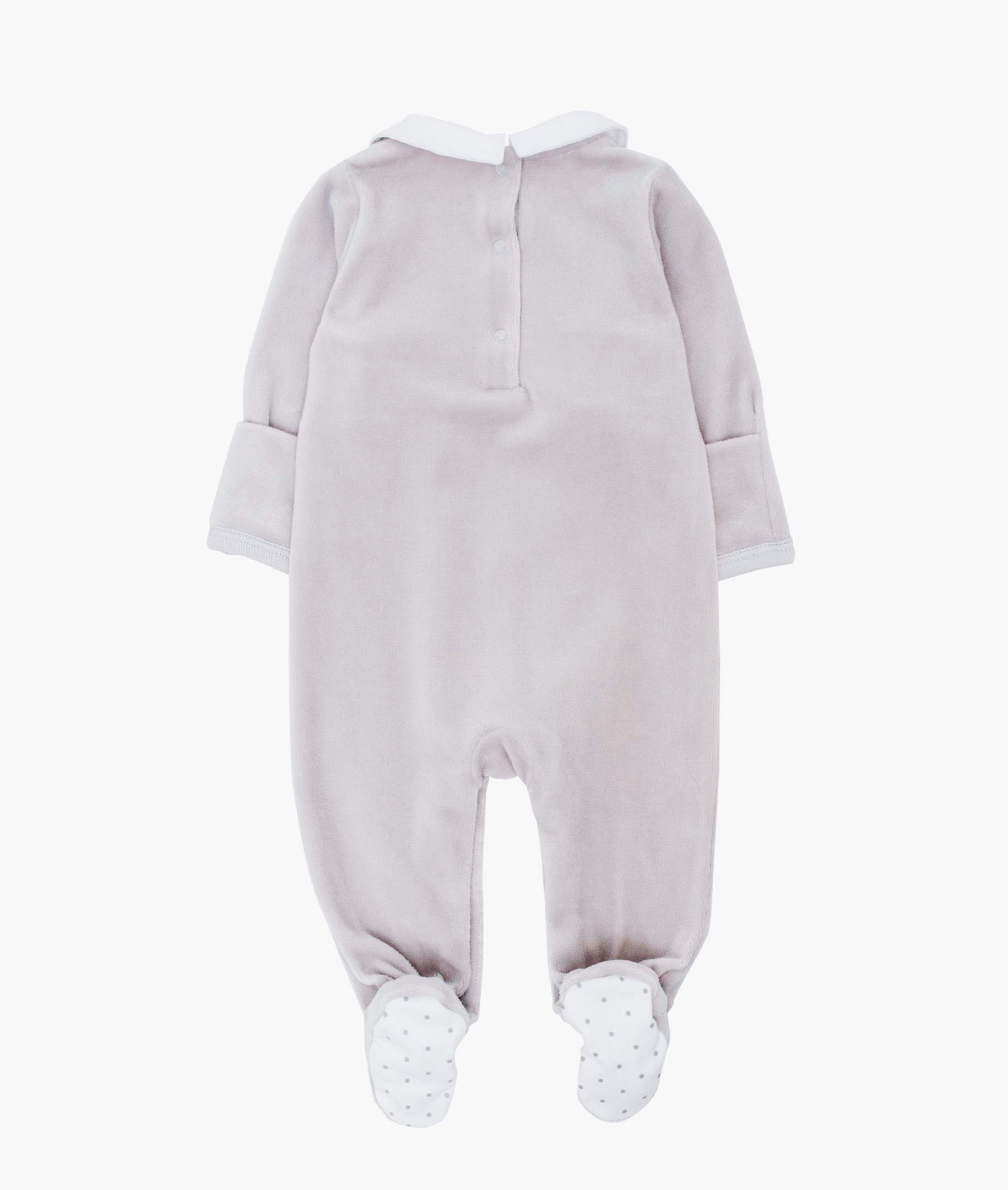 Atveskite savo mažylį į šį pasaulį švelniausiu įmanomu būdu: mūsų „Avyčių“ šliaužtinukas pasiūtas iš itin minkšto pliušinio audinio, su miela ir stilinga apykakle bei siuvinėtomis avytėmis ant krūtinės.
