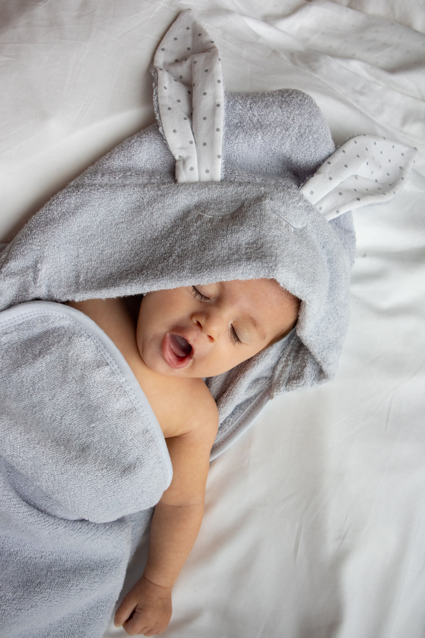 Iššokite iš vonios ir pasinerkite į mielumą su mūsų žaviu zuikio rankšluosčiu! Su žaismingomis zuikio ausytėmis viršuje, jaukiai įsuktam mažyliui padės išlikti sausam ir tuo pačiu metu žavingai stilingam. Maudynių laikas taps dar labiau laukiamas.