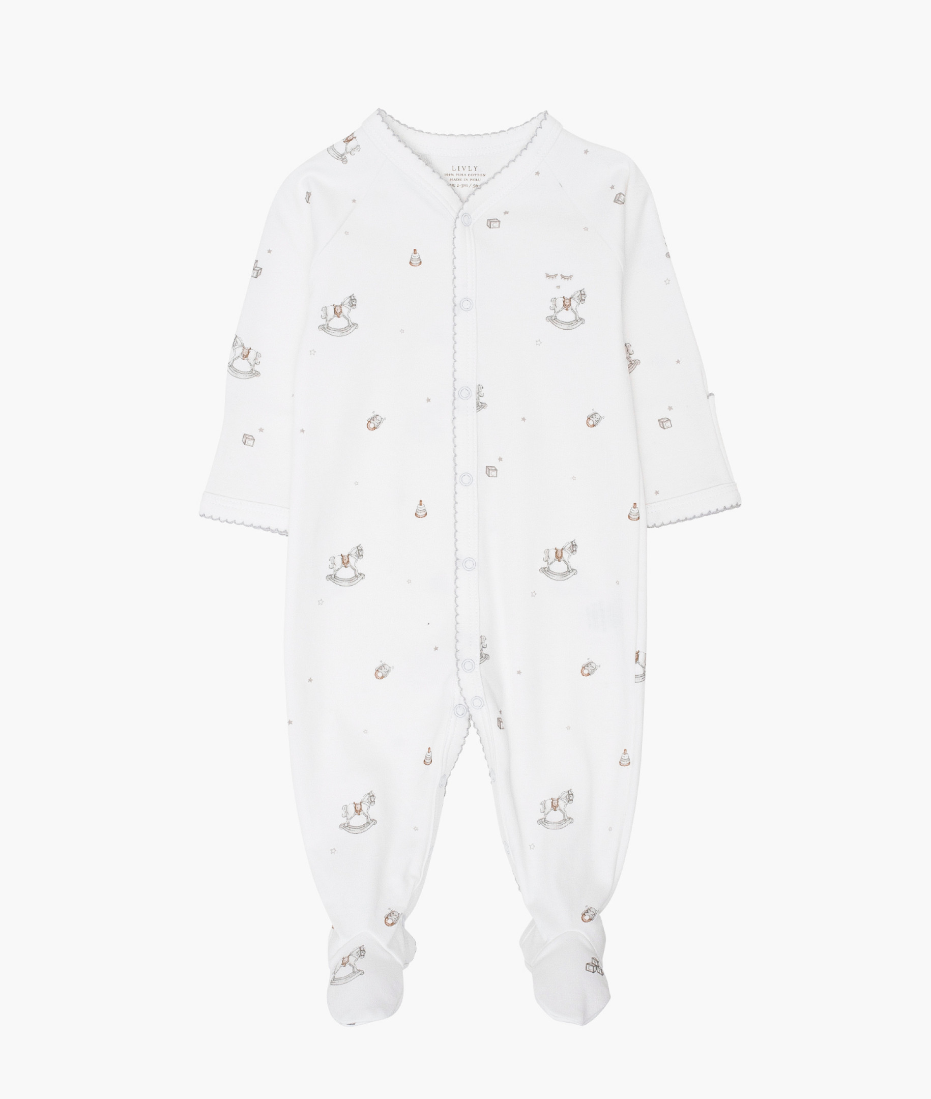 Pima medvilnė yra minkštas ir patvarus natūralus pluoštas, kuris rankomis atrenkamas, kad būtų pagaminti geriausios kokybės kūdikių rūbeliai. Tikroji audinio spalva gali skirtis priklausomai nuo sezono. Nuo geriausių audinių iki dėmesio detalėms – mes esame pasiryžę tiekti minkščiausius ir patvariausius kūdikių rūbelius, kuriuos branginsite amžinai.