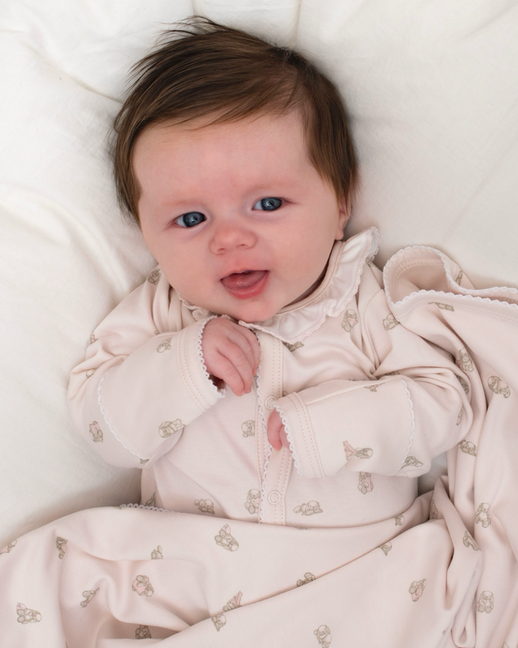 Pasveikinkite savo mažylį šiame pasaulyje švelniausiu ir jaukiausiu būdu su mūsų šliaužtinuku „Kiškučiai“. Pagaminta iš 100 % hipoalerginės Pima medvilnės, ji švelni jautriai naujagimio odai ir užtikrina kūdikio komfortą visą dieną. Šliaužtinukas pasižymi žavingu „Kiškučių“ raštu, nikelio neturinčiomis spaudėmis priekyje, kad būtų lengva apsirengti, ir subtiliomis raukinių detalėmis, suteikiančiomis papildomo švelnumo. Puikiai tinka miegui, žaidimams ar kasdieniam dėvėjimui, tai universalus bet kurio naujagimio garderobo papildymas. Derinkite su kepure ir antklode su tuo pačiu raštu, kad sukurtumėte pilną, žavingą aprangą, kurioje dera stilius, patogumas ir nesenstantis žavesys.