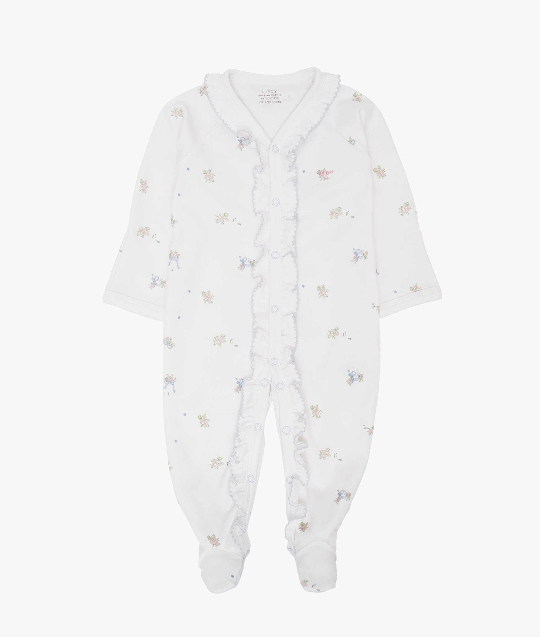 Pasveikinkite savo mažylį švelniausiu įsivaizduojamu būdu. Mūsų šliaužtinukai, papuošti rankomis tapytu rožyčių ir kaspinėlių raštu, apgaubia švelnią odą 100 % hipoalergine Pima medvilne. Akvarelinės gėlės ir dailūs rudens kaspinai šoka per audinį, o nikelio neturinčios spaudės priekyje leidžia lengvai pakeisti rūbelius. Apdaila su raukiniais, suteikiančiais papildomo švelnumo – juk kiekvienas pirmasis rūbelis turėtų būti nepamirštamas.