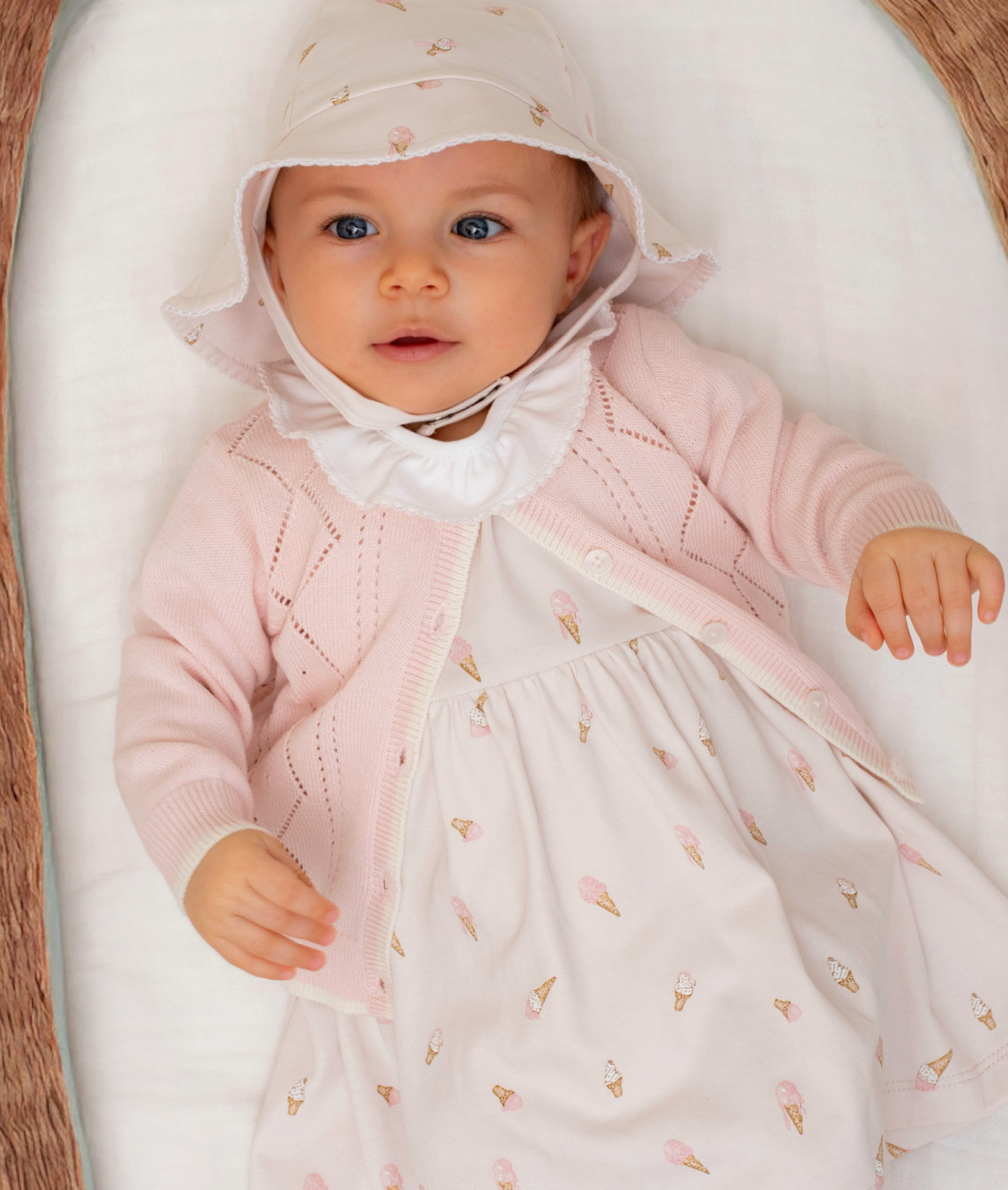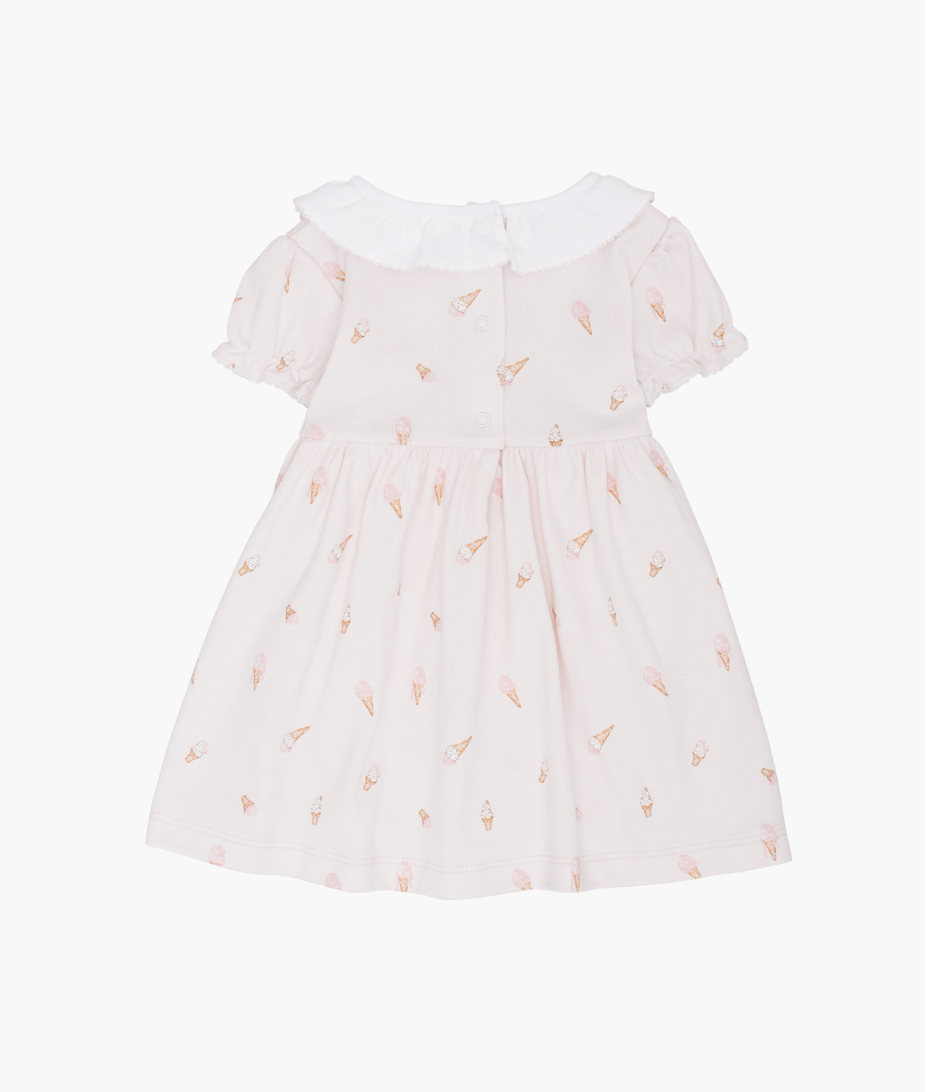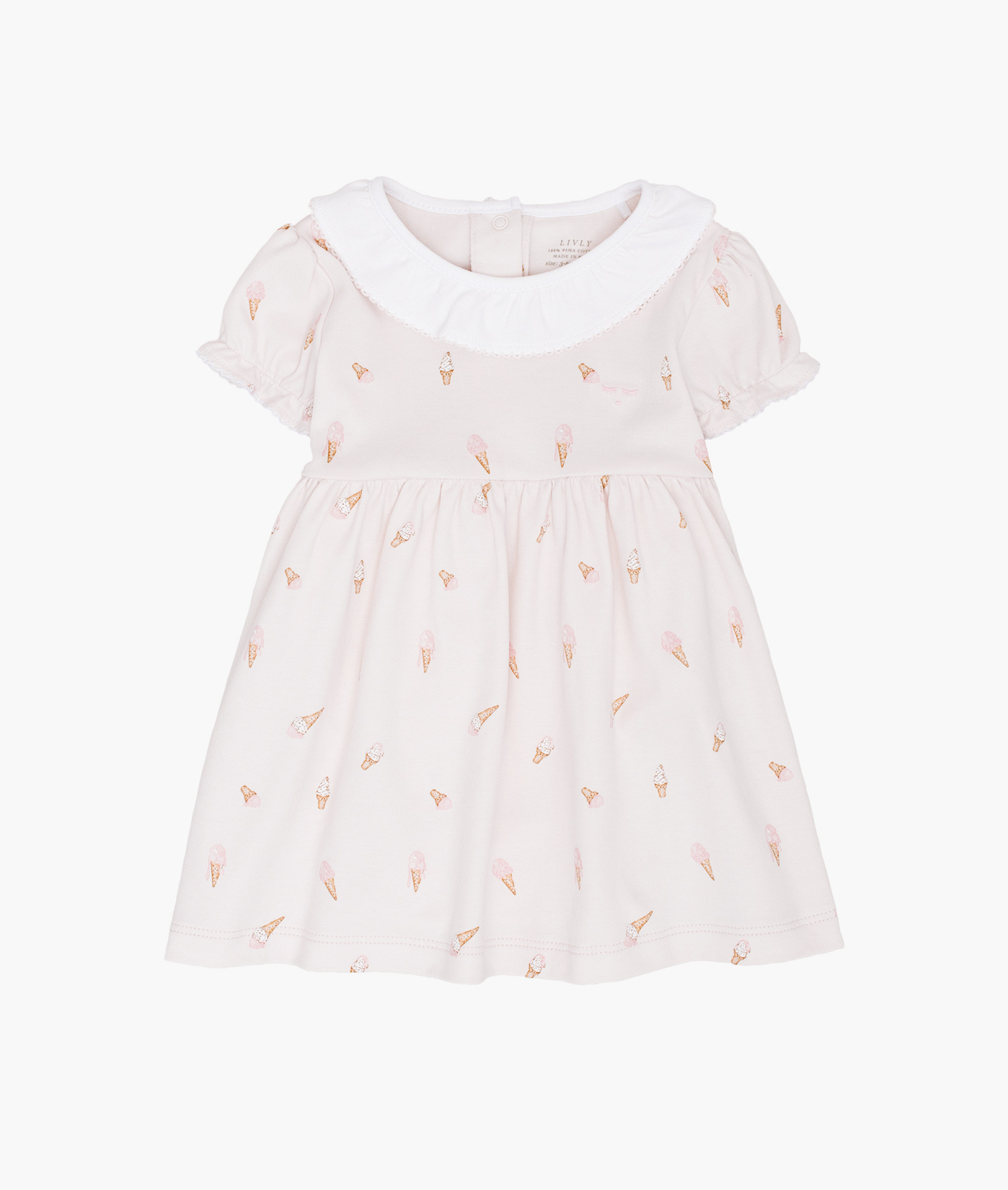 Miela ir žaisminga ledų rašto suknelė pasižymi minkšta apykakle, trumpomis rankovėmis ir įsiūtu smėlinuko klynuku, kad būtų lengva pakeisti sauskelnes ir apsirengti. Pagaminta iš švelnios medvilnės ir papuošta mūsų žaismingu „Ledų“ raštu, ji puikiai tinka saulėtoms dienoms, gimtadieniams ir kasdienėms šypsenoms. Džiaugsminga maža suknelė jūsų brangiausiam žmogui.