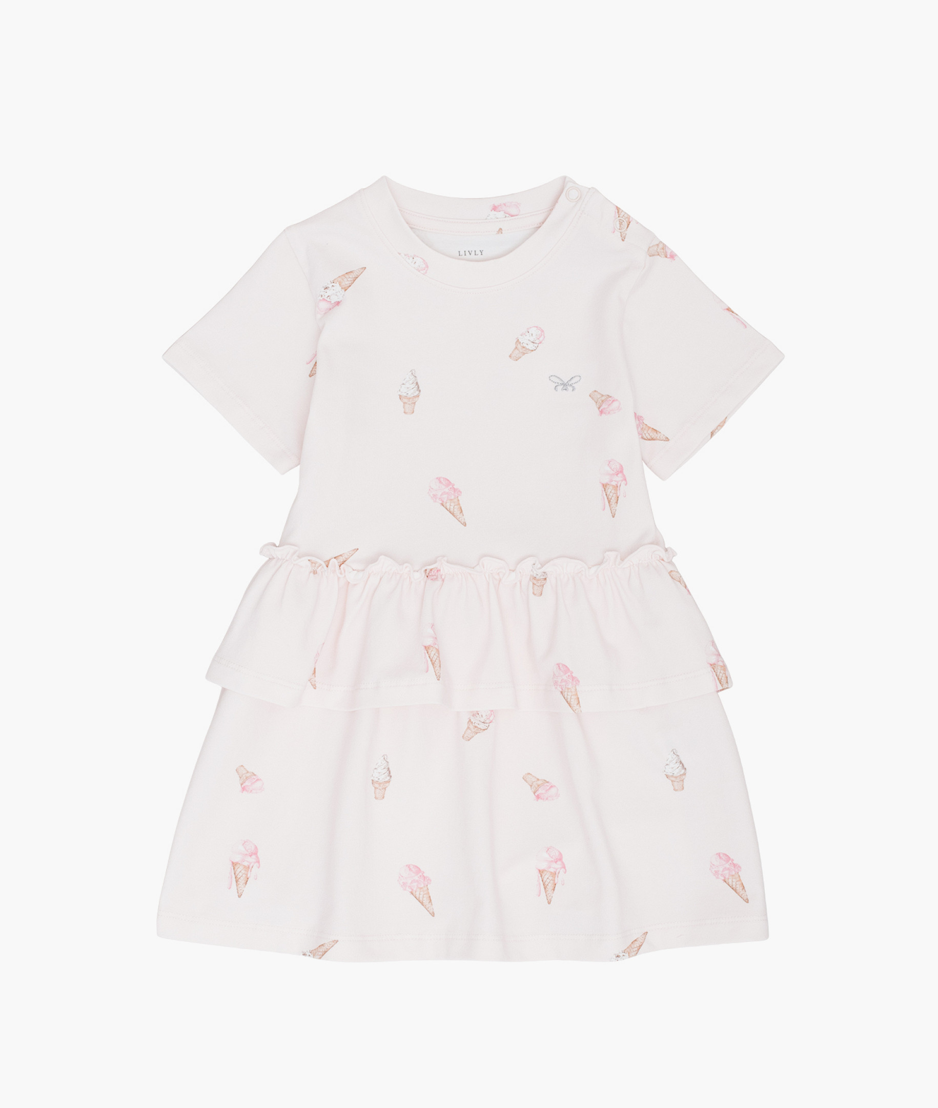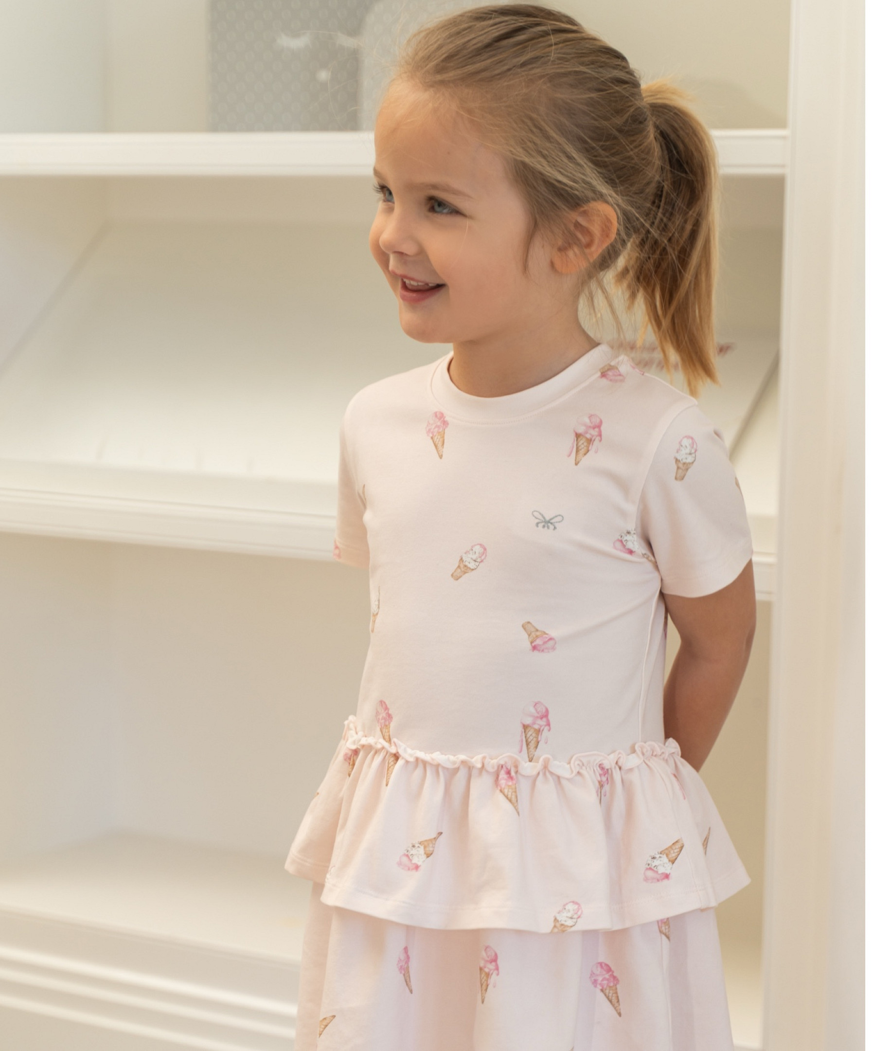Suteikite bet kuriai dienai žaismingumo su mūsų švelniai rožinės spalvos „Lilly“ suknele su žaismingu ledų raštu. Pagaminta iš kvėpuojančio, minkšto medvilnės mišinio, ji užtikrina mažylių komfortą judant ir žaidžiant. Sukimui draugiškas dizainas kiekvieną pasisukimą paverčia dar smagesniu, puikiai tinka žaidimų pasimatymams, gimtadienio šventėms ar laisvalaikio išvykoms. Kruopštus pasiuvimas užtikrina judėjimo laisvę ir laisvą kirpimą, derindamas komfortą su džiaugsmingu stiliumi. Dėl mūsų išskirtinio dėmesio kokybei ir žavingoms detalėms ši suknelė yra žavingas favoritas kasdieniams nuotykiams.
