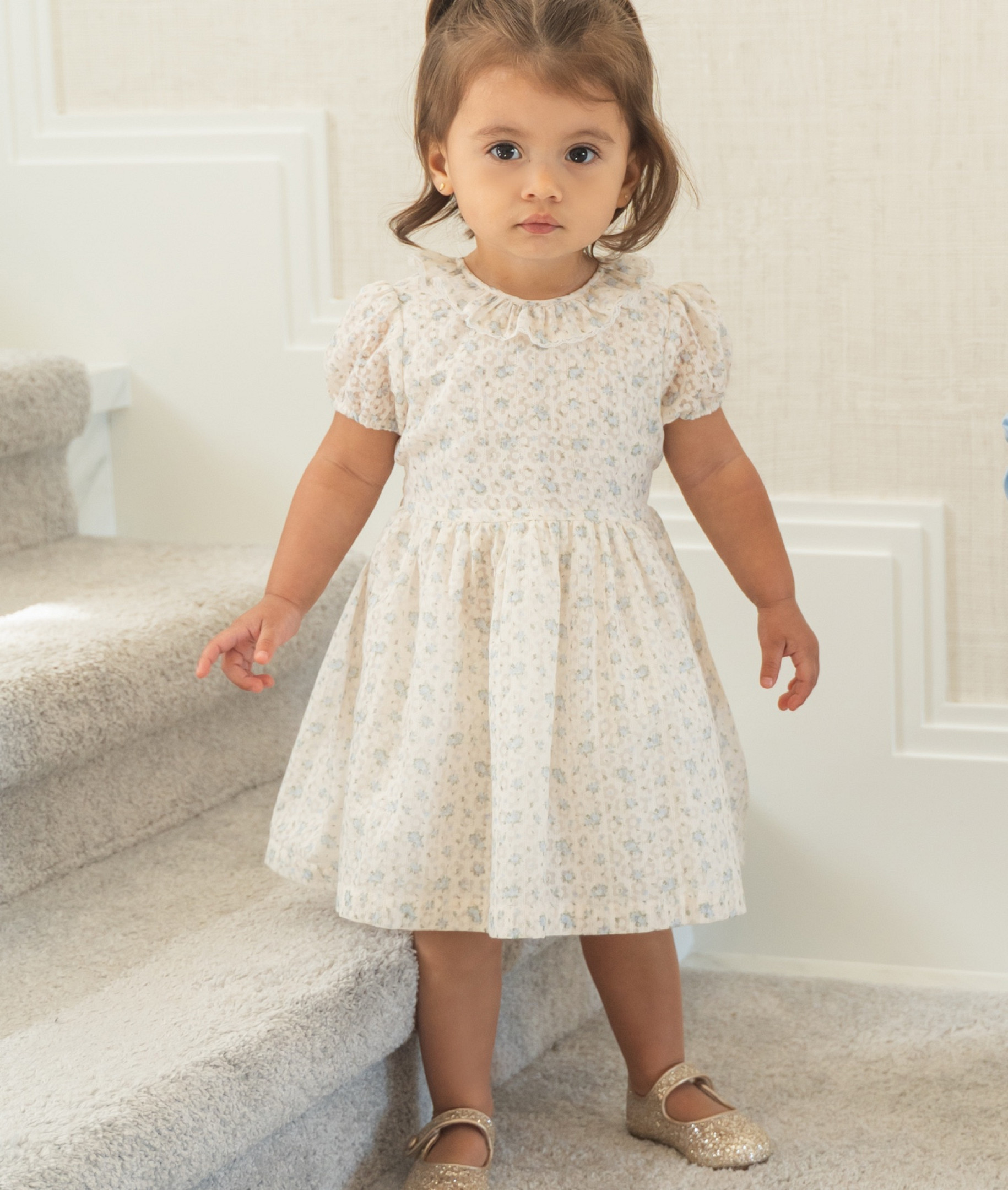 Mūsų gėlėta „Rosie“ suknelė džiugina kiekvienu žingsniu ir puikiai tinka tiek šventėms, tiek kasdieniams žaidimams. Sukurta su itin miela klostuota apykakle su raukiniais, ji pasižymi gražiomis detalėmis, kurios suteikia žavesio ir akį traukiančio akcento. Minkštas siluetas leidžia patogiai judėti, todėl jūsų mažylei lengva žaisti, suktis ir tyrinėti. Nuostabus mielumo ir praktiškumo balansas, ši suknelė yra universalus garderobo favoritas, kuris padės jūsų vaikui atrodyti žavingai ir pasiruošti bet kokiai smagiai progai. Dėl laikui nepavaldaus dizaino, norėsis išsaugoti ateities kartoms.