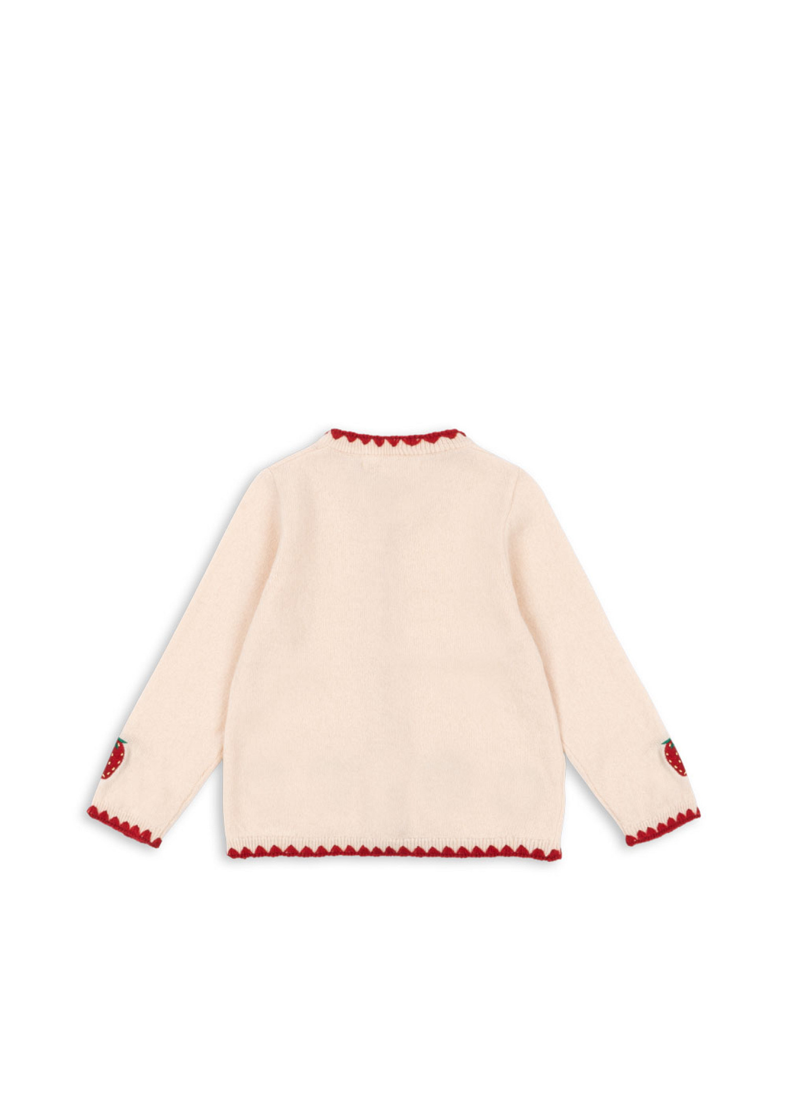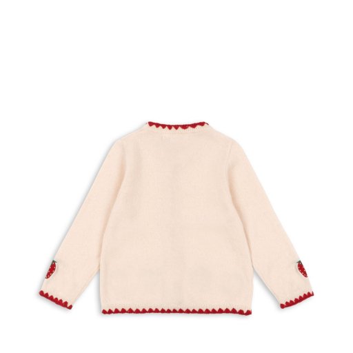 „Braškė“ – išskirtinai minkštas megztas kardiganas, dekoruotas subtiliais braškių siuvinėjimais ir kontrastingo audinio kraštais. Užsegamas perlamutrinėmis sagomis priekyje.