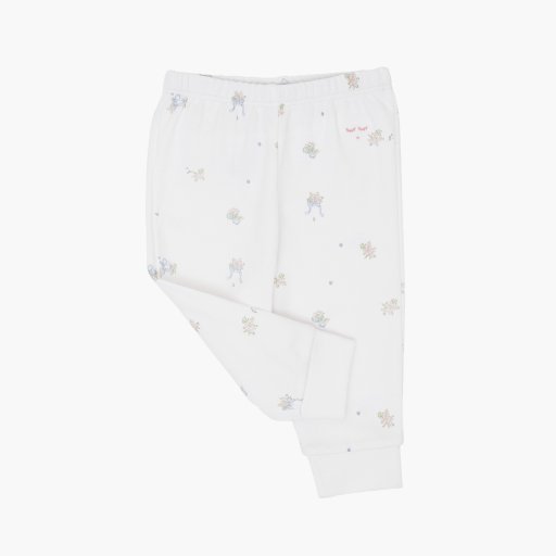 Kasdienis komfortas dar saldesnis. Kelnytės pasiūtos iš minkščiausios hipoalerginės Pima medvilnės ir papuoštos rankomis tapytu gėlių ir dailių rudens kaspinėlių raštu. Šios mažytės kelnės su tampria juostele puikiai priglunda, todėl tinka jaukioms dienoms, žaismingiems rytams ir visiems jaukiems prisiglaudimams.