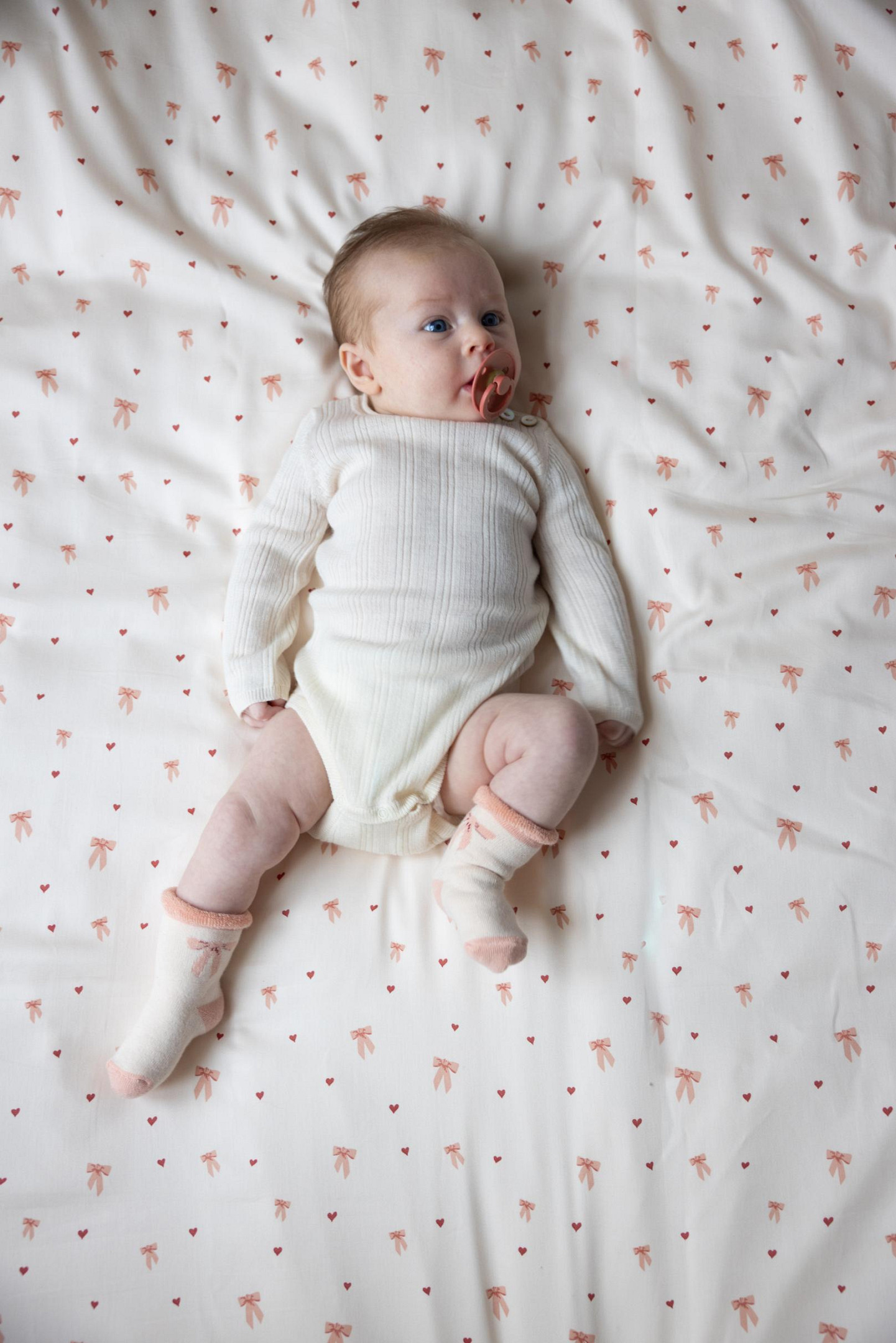 Trys poros pasižymi skirtingais žavingo kaspinėlių rašto motyvais, suteikiančiais mielumo bet kokiai aprangai. Puiki dovanos idėja kūdikio sutiktuvių ar gimimo proga.
