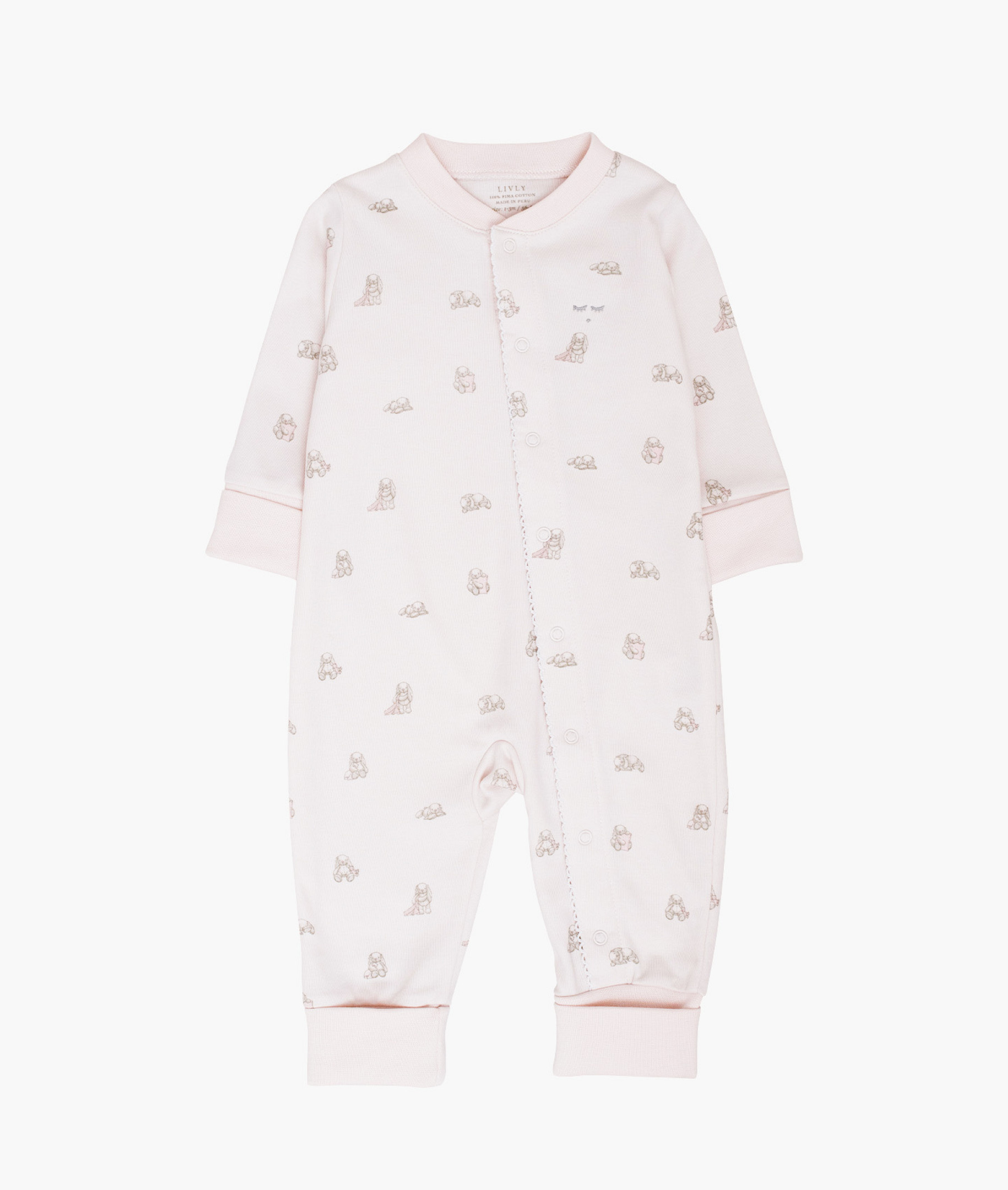 Mūsų klasikinis kombinezonas tapo mamyčių mėgstamiausiu drabužiu. Su nikelio neturinčiomis spaudėmis priekyje ir rankogaliais, kurie gali būti užlenkiami priklausomai nuo jūsų kūdikio poreikių, mūsų kombinezonas yra bene pirmasis dalykas mūsų būtiniausių prekių sąraše! Derinkite kombinezoną su kepure ir antklode su tuo pačiu raštu, kad sukurtumėte pilną įvaizdį.