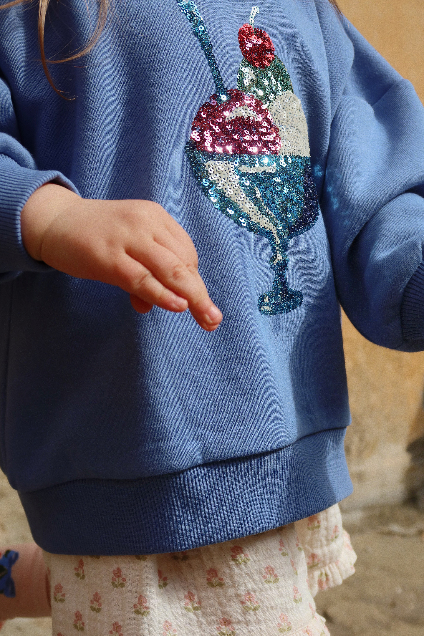 Mūsų klasikinis „Loumilla“ džemperis su dekoratyviniu blizgučių raštu. Pastaba: džemperiai iki 18 mėnesių dydžio yra su sagomis ant pečių, kad geriau priglustų prie mažų galvyčių. Šiame gaminyje yra mažiausiai 70 % OCS sertifikuotos medvilnės, sertifikuotos pagal CU1094701.
