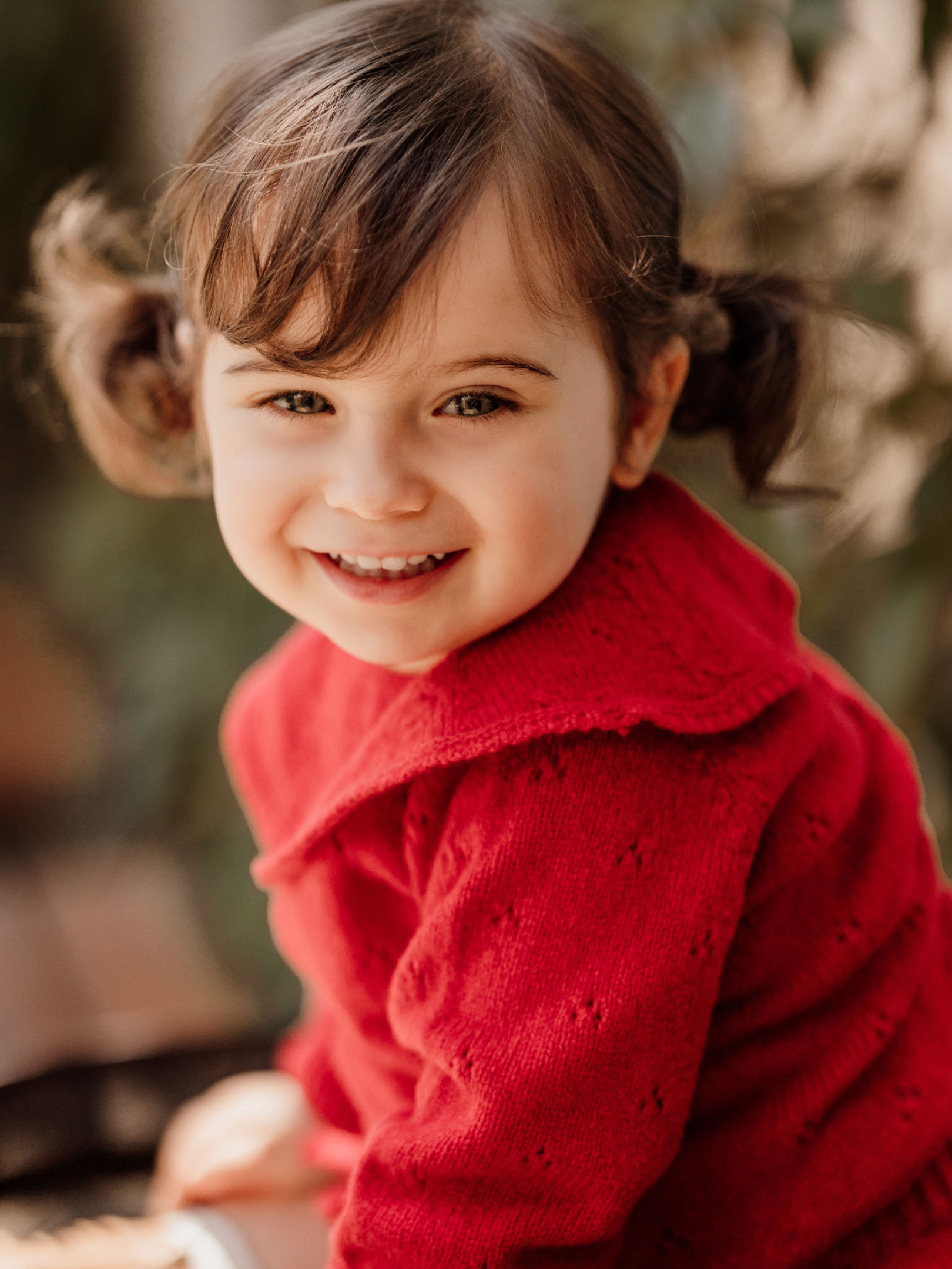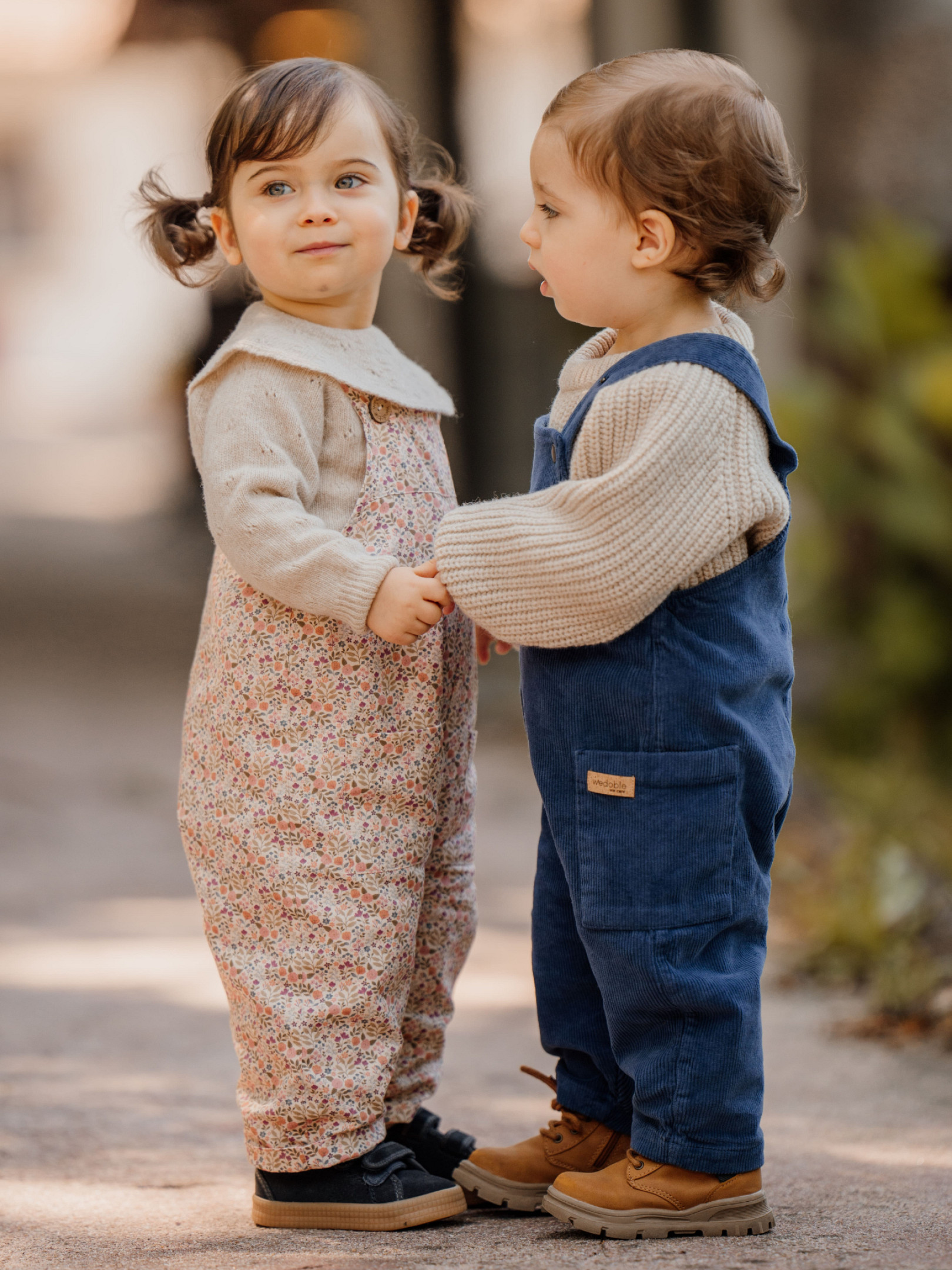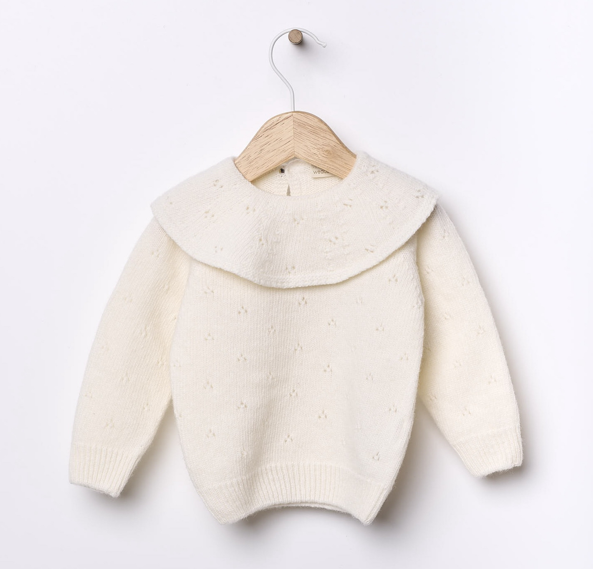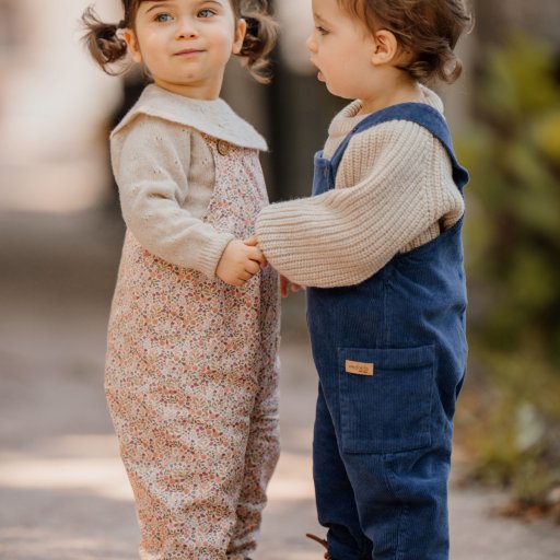 Megztinis megztas iš nuostabios, itin plonos merino vilnos. Ilgarankovis „Laiminga“ megztinis užsegamas perlamutrinėmis sagomis nugaroje. Pagamintas naudojant „Wholegarment“ technologiją, šis megztinis yra besiūlis, kad jūsų vaikas jaustųsi kuo patogiau.