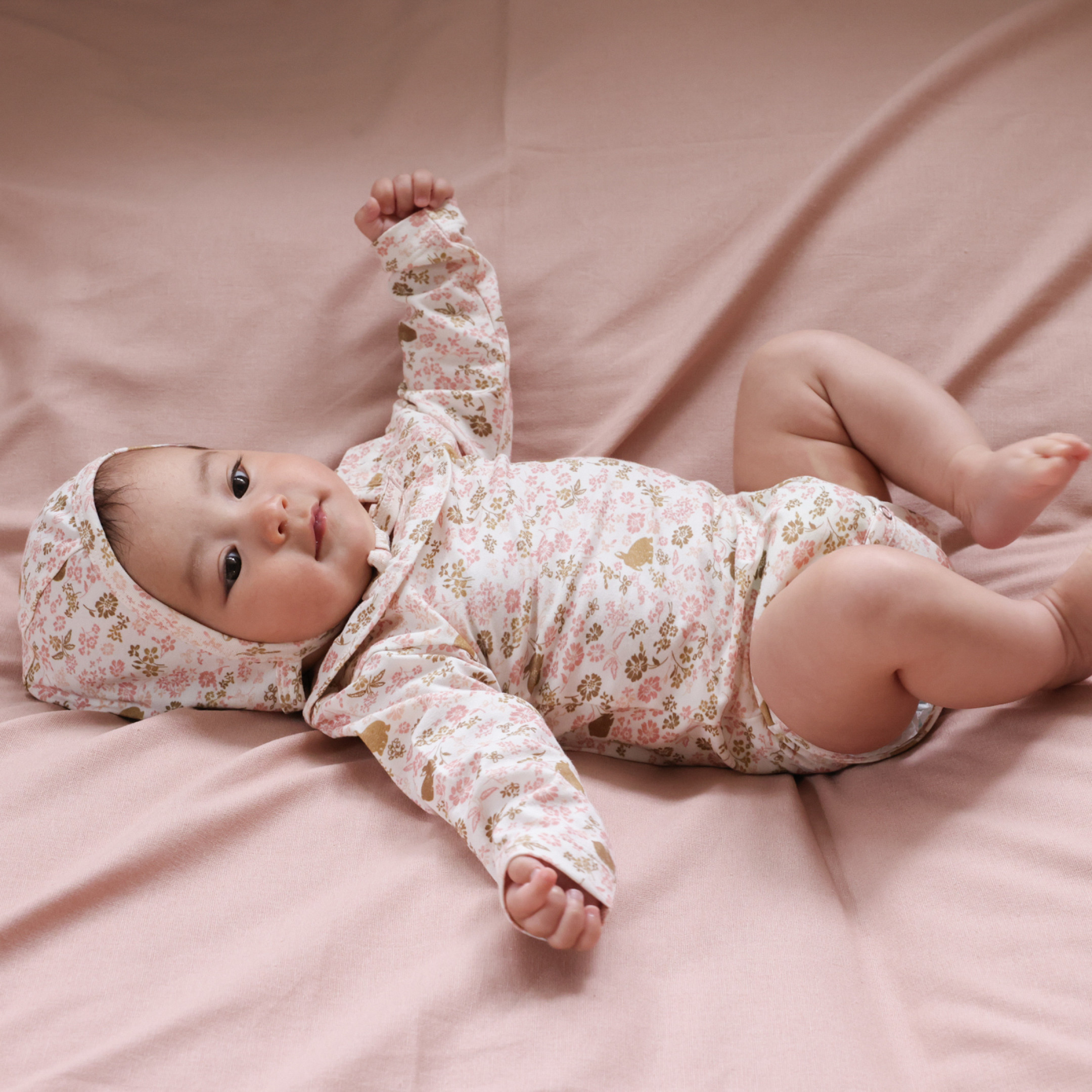 Pagamintas iš minkščiausios, tamprios džersio medvilnės, šis subtilus bodis suteikia aukščiausią komfortą jūsų kūdikio jautriai odai.