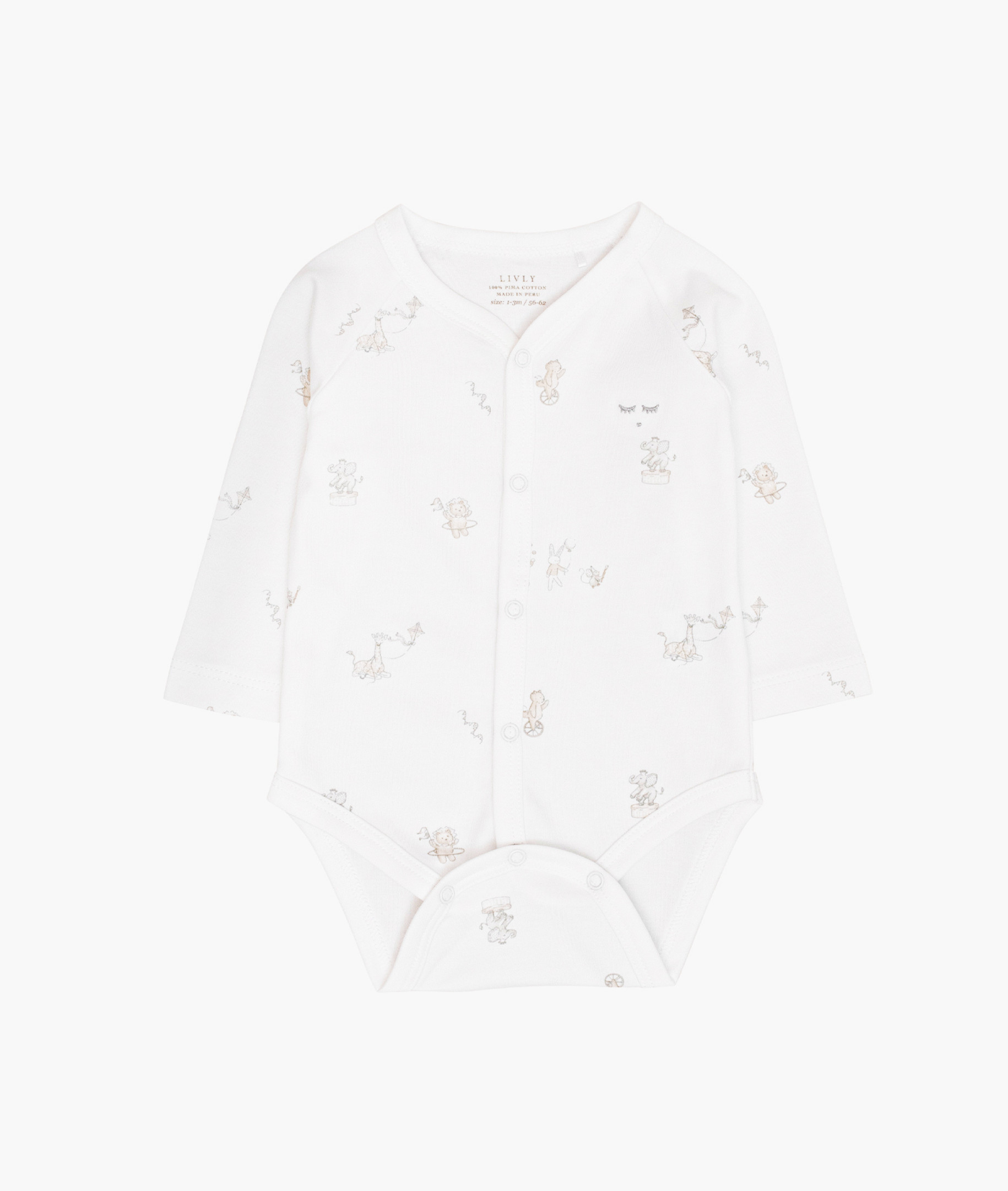 Pasirūpinkite, kad jūsų kūdikis būtų jaukiai stilingas su „Šventinis paradas" pilnai užsegamu smėlinuku, pasiūtu iš minkštos Pima medvilnės. Ilgos rankovės suteikia šilumos, o žaismingas raštas suteikia žavesio kiekvienam aprangos deriniui. Su pilnai užsegamomis spaudėmis, aprengti ir pakeisti sauskelnes yra greita ir paprasta, todėl puikiai tinka kasdieniam dėvėjimui, žaidimams ar dienos miegui. Minkštas, kvėpuojantis ir patvarus, šis būtinas drabužis sujungia komfortą, praktiškumą ir stilių. Laikui nepavaldus jūsų mažylio garderobo papildymas užtikrins, kad jūsų kūdikis atrodytų žavingai ir jaustųsi patogiai visą dieną.